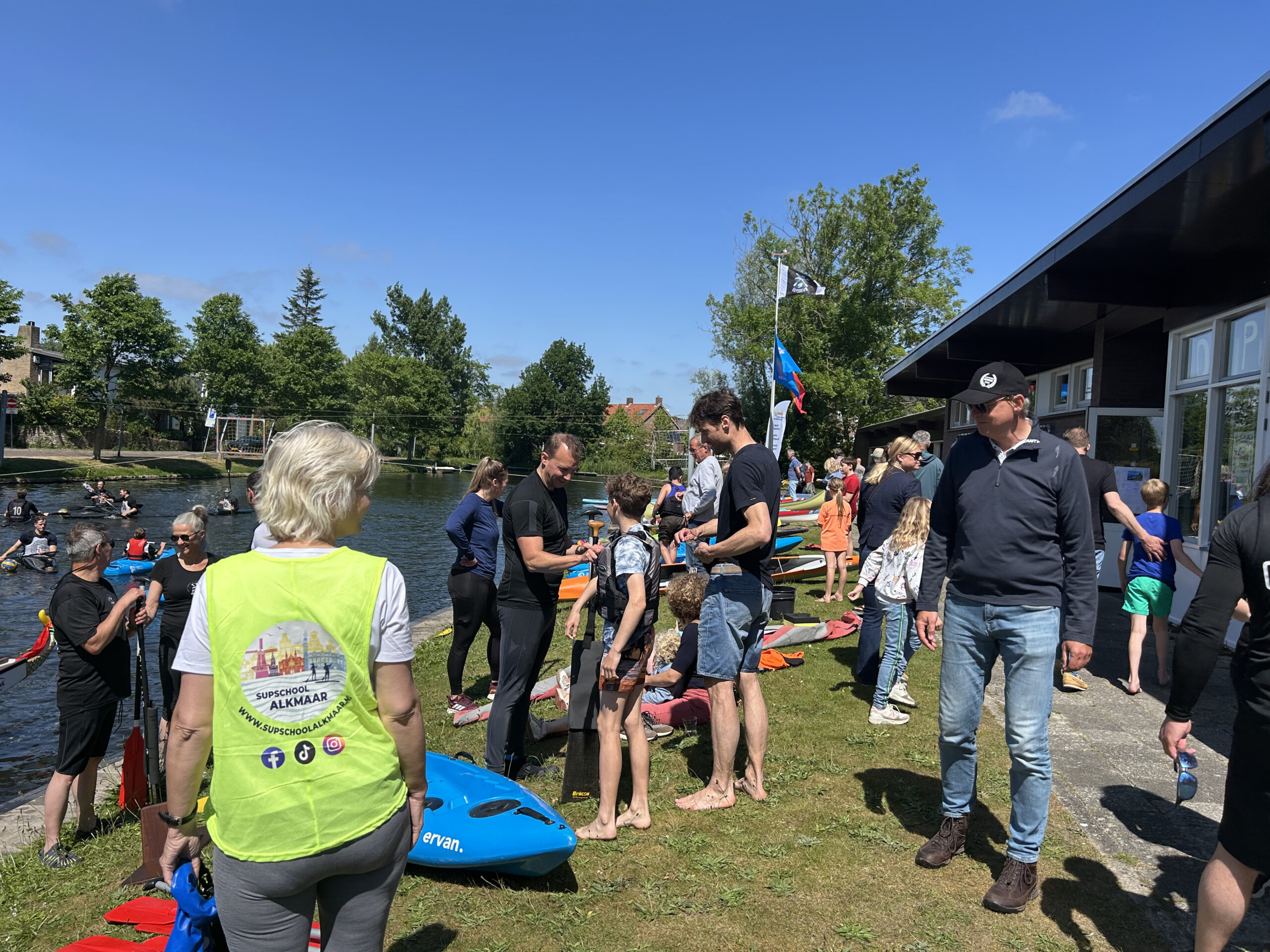 Met een stralend zonnetje erbij kon vanaf 13.oo uur iedereen ervaren hoe het is om rustig te kanoën, fanatiek te kanopoloën of met een groep de drakenboot door het water te laten glijden ! Het werd een zeer enthousiaste middag.