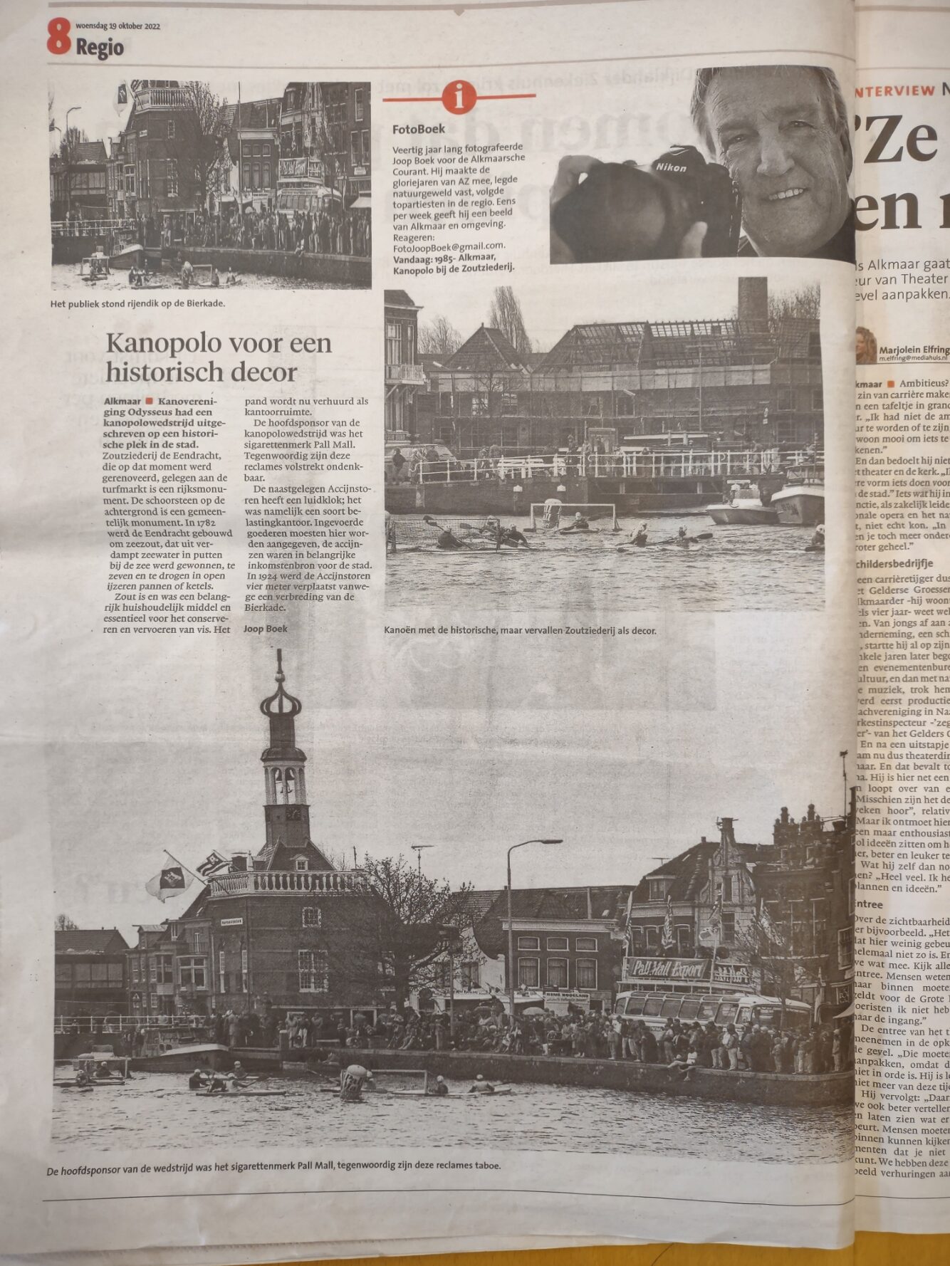 Op de foto zien we kanopoloërs van Odysseus in actie. Toen al timmerden ze aan de weg blijkbaar ! De tekst van het krantenartikel geeft een mooi tijdsbeeld, en maakt duidelijk “hoe tijden veranderen”.